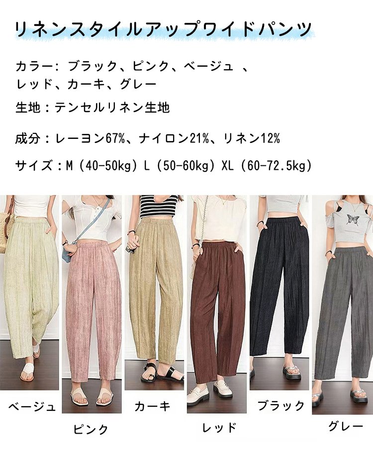 レディースコットンリネンワイドパンツ